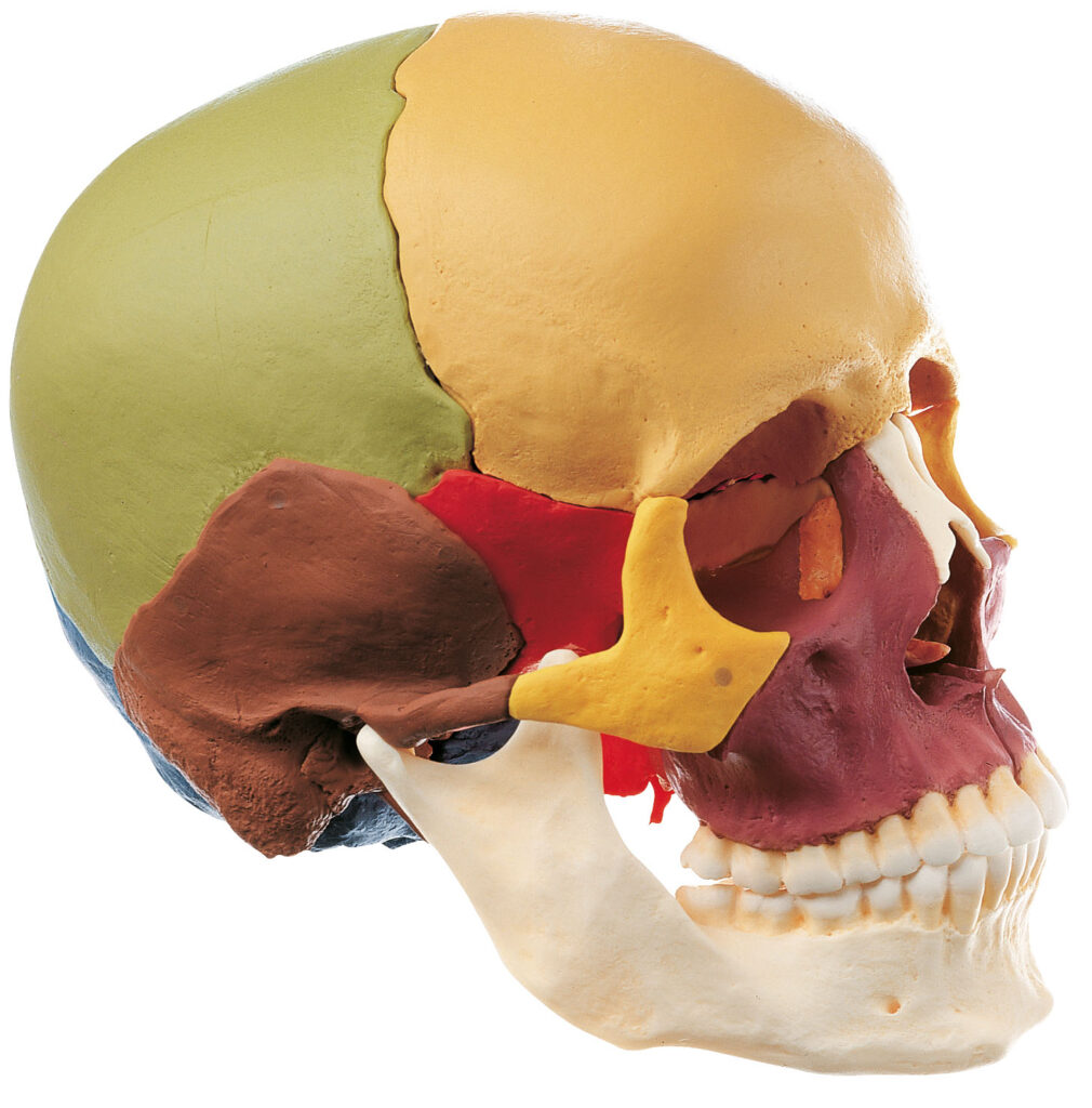 - The model of the skull comprises 14 individual parts, that can be disassembled and put back together by way of plug connections