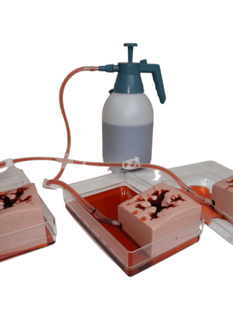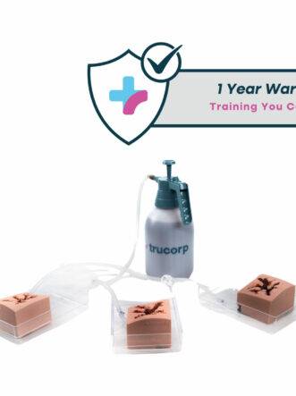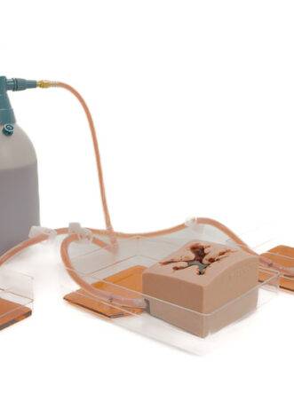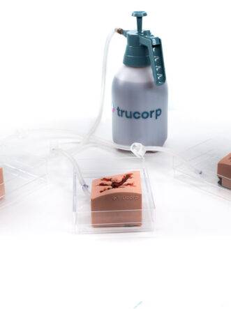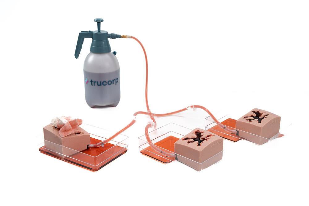 The TruWound is a realistic gunshot wound model with a pressure blood supply system to simulate severe haemorrhaging. It allows realistic wound packing training techniques with visual feedback when the correct pressure is applied to the packed wound.