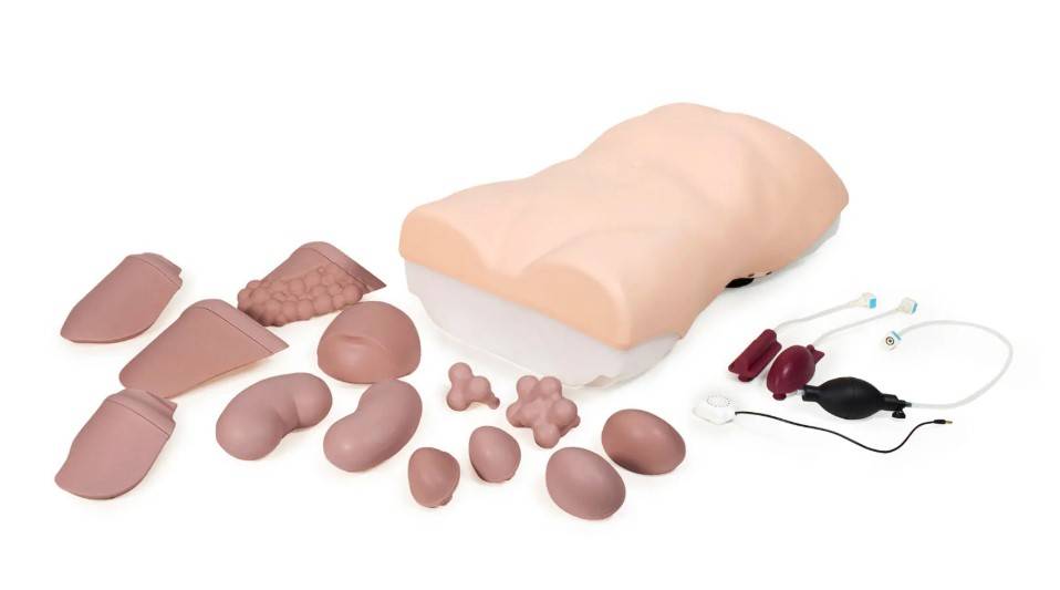 - The trainer comes with interchangeable pathological organs and tissue masses, including a variety of livers, spleens, abdominal aortas and various masses, that can all be quickly inserted on to the abdominal organ locator