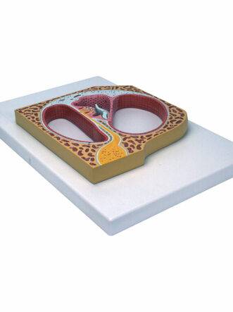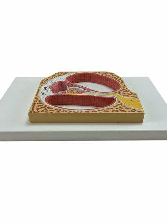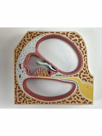 A one-piece model a useful tool for studying the mechanism of sound reception. The model shows an enlarged section of the cochlea and the organ of Corti including the hair cells and the tectorial basilar membrane. Accompanying an interactive 3D anatomical model with augmented reality is a great tool to encourage learning and support. This platform allows students to engage in comparative analysis of anatomical models as they compare and contrast the structure of individual organs. This initiative also provides a platform for continuing education providing opportunities for all students to increase their knowledge of anatomy physiology and pathophysiology.