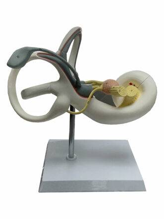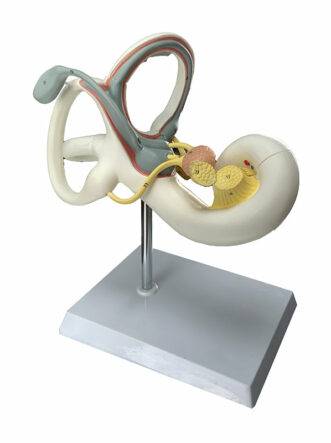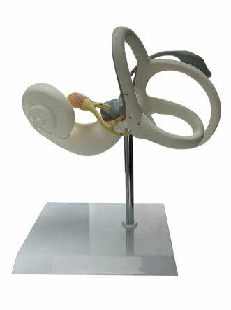 Consists of two parts: the labyrinth of the inner ear and the longitudinal section of the cochlea cut along the longitudinal axis of the cochlea. It can display the open superior semicircular canal, the vestibular balloon of the inner ear, the utricle, the longitudinal section of the cochlea, and the vestibular cochlear nerve. Accompanied by an interactive 3D anatomical model with augmented reality, it is a great tool to encourage learning and support. This platform allows students to engage in comparative analysis of anatomical models as they compare and contrast the structure of individual organs. This initiative also provides a platform for continuing education, providing opportunities for all students to increase their knowledge of anatomy, physiology and pathophysiology.