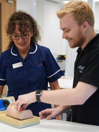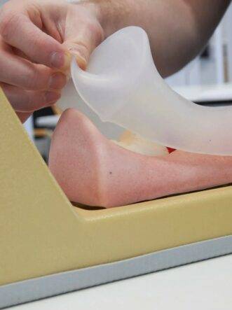 - A translucent skin covering is also included to aid visual anatomical understanding, whilst a flesh tone skin covering can be used as proficiency is gained and in scenario based simulation
