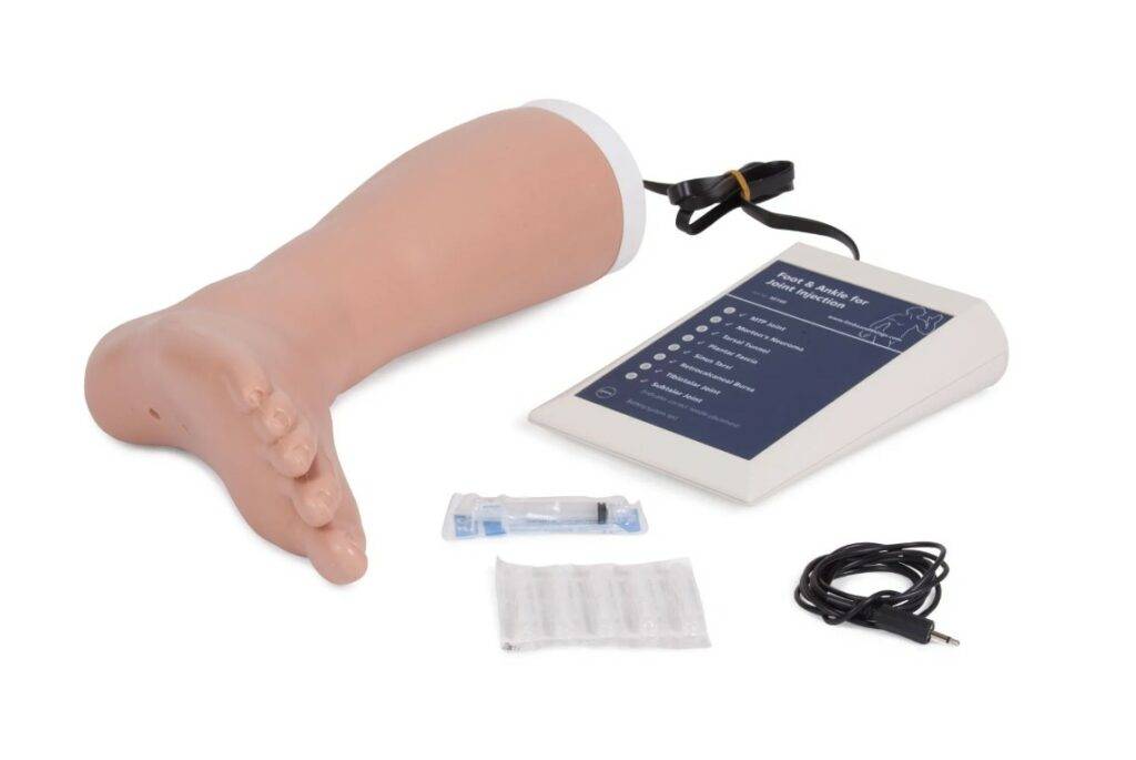 A Limbs & Things foot and ankle for practicing soft tissue injection for the treatment of injuries and arthritis. Designed in collaboration with Mr Jim Pickard and Dr Chris Davies from the University of Huddersfield, UK.
