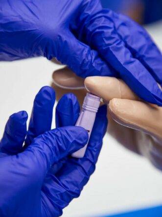 - Obtaining a blood sample and placement of this onto the test strip