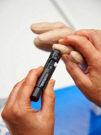 Diabetes affects some 415 million people globally and it is expected to affect one person in 10 by 2040, raising this international figure to 642 million. In the UK an estimated 4.5 million people live with diabetes. Effective diabetes management is now a growing part of those general skills which all clinicians must possess. Blood glucose monitoring remains key in managing diabetes. This model was designed by Nina Godson, Assistant Professor and Lead for Clinical Skills at Coventry University.