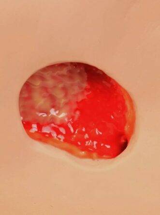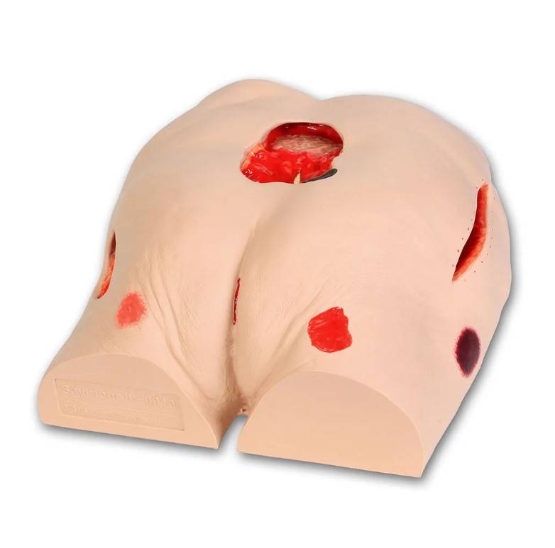 - Wound care simulation model displays the following pressure injuries: