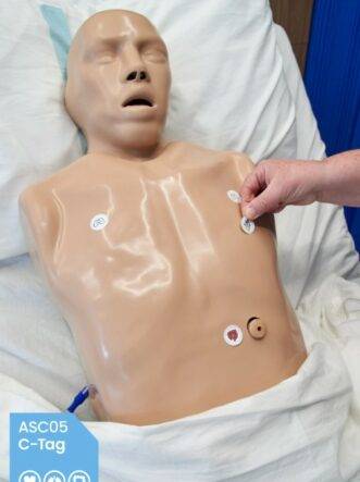 Location marker tags can be stuck to any manikin or standardised patient and when used with the ASC06 C-Ound – Hybrid Digital Stethoscope, allow various heart, lung and bowel sounds to be heard – 30 are supplied with the bundle but more can be ordered.