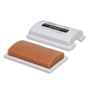 Ultrasound block with three gallbladders with different pathologies: Gallstones (diameter: 8 and 10 mm), thickened gallbladder wall and biliary sludge deposit. The gallstones and the sludge in the gallbladder model can move around and react to changes in position.