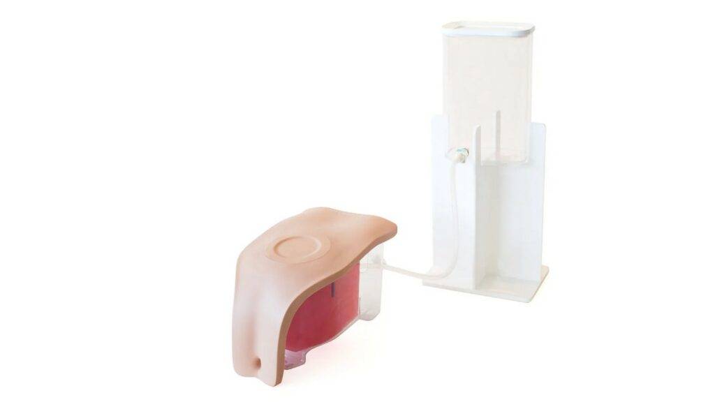 The Limbs & Things Suprapubic Insertion Unit can be used independently or combined with another catheterisation trainer for a real to life simulation. This module allows for the practice of the surgical procedure of suprapubic catheterisation and is made of echolucent silicone for ultrasound guided procedures.