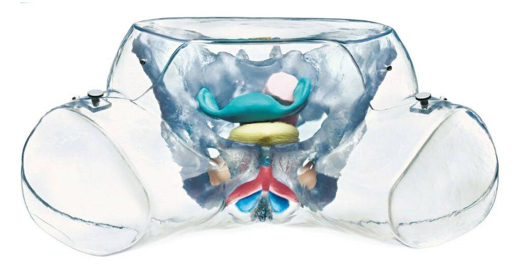 - The transparent model of the female sexual organs is easy to open, allowing the internal organs to be viewed and touched, thus providing clear information on the location of the bladder, the vagina, and the intestines as well as on the size of the clitoris and on the location of the cavernous bodies