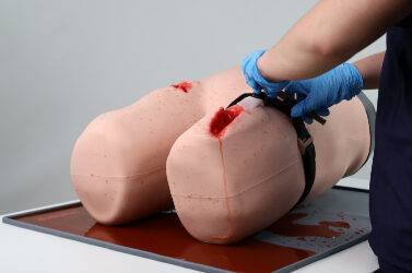 The TruJunctional has been designed to practise massive haemorrhage control in a trauma situation. The model is based on the lower extremity of an adult male and provides realistic bleeding control with visual feedback on user performance.